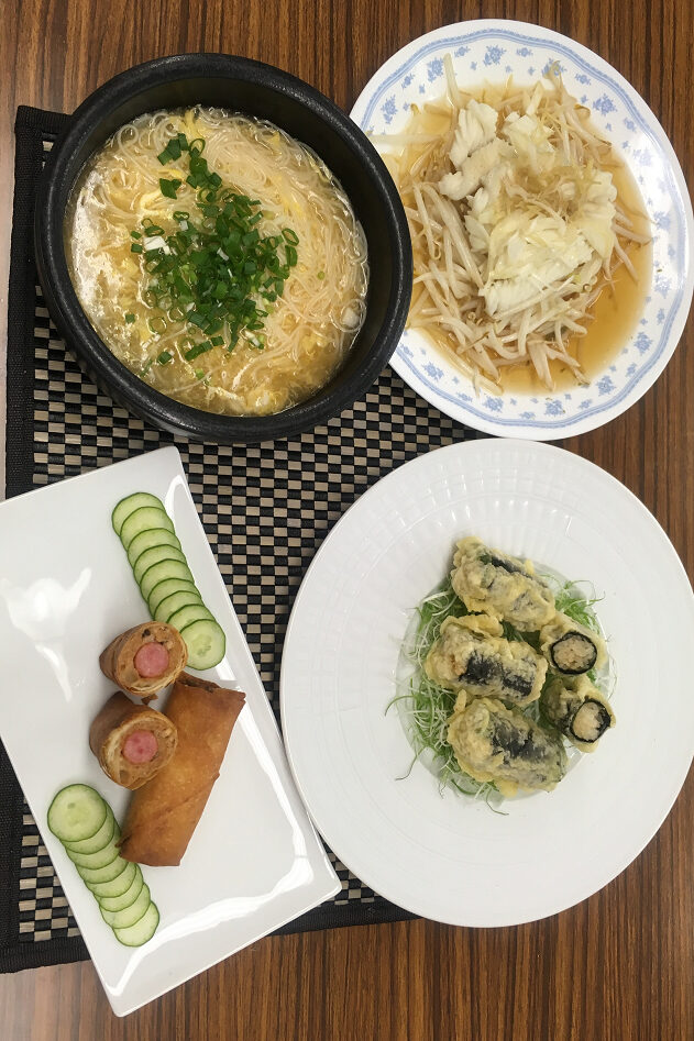 当日は講師として、JRタワーホテル日航札幌の有城伸一シェフをお招きし、運動会にピッタリなメニューや、意外と知らない調味料を入れる正しいタイミングなどを教えていただきました。弊社からは「昔ながらのあらびきポークウインナー」を提供し、春巻きにしていただきました。